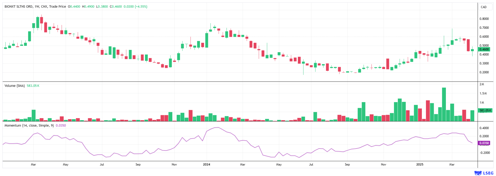 Das Interesse an der BioNxt-Aktie ist wieder erwacht, mit steigenden Handelsumsätzen könnte es sein, dass ein schneller Sprung über die 1 EUR Marke gelingen könnte, alte Hochs liegen sogar deutlich über 2 EUR. Risikobewusste Investoren setzen auf weitere Fortschritte und den baldigen Markteintritt. In Anbetracht der historischen Schwankungsbreite liegt aktuell ein gutes Einstiegsniveau vor! Mit den Fortschritten im Kerngeschäft und der Expansion in einen neuen Milliardenmarkt wird BioNxt auch immer interessanter für eine Übernahme. Es würde nicht wundern, wenn ein großer Player die Arena betritt.