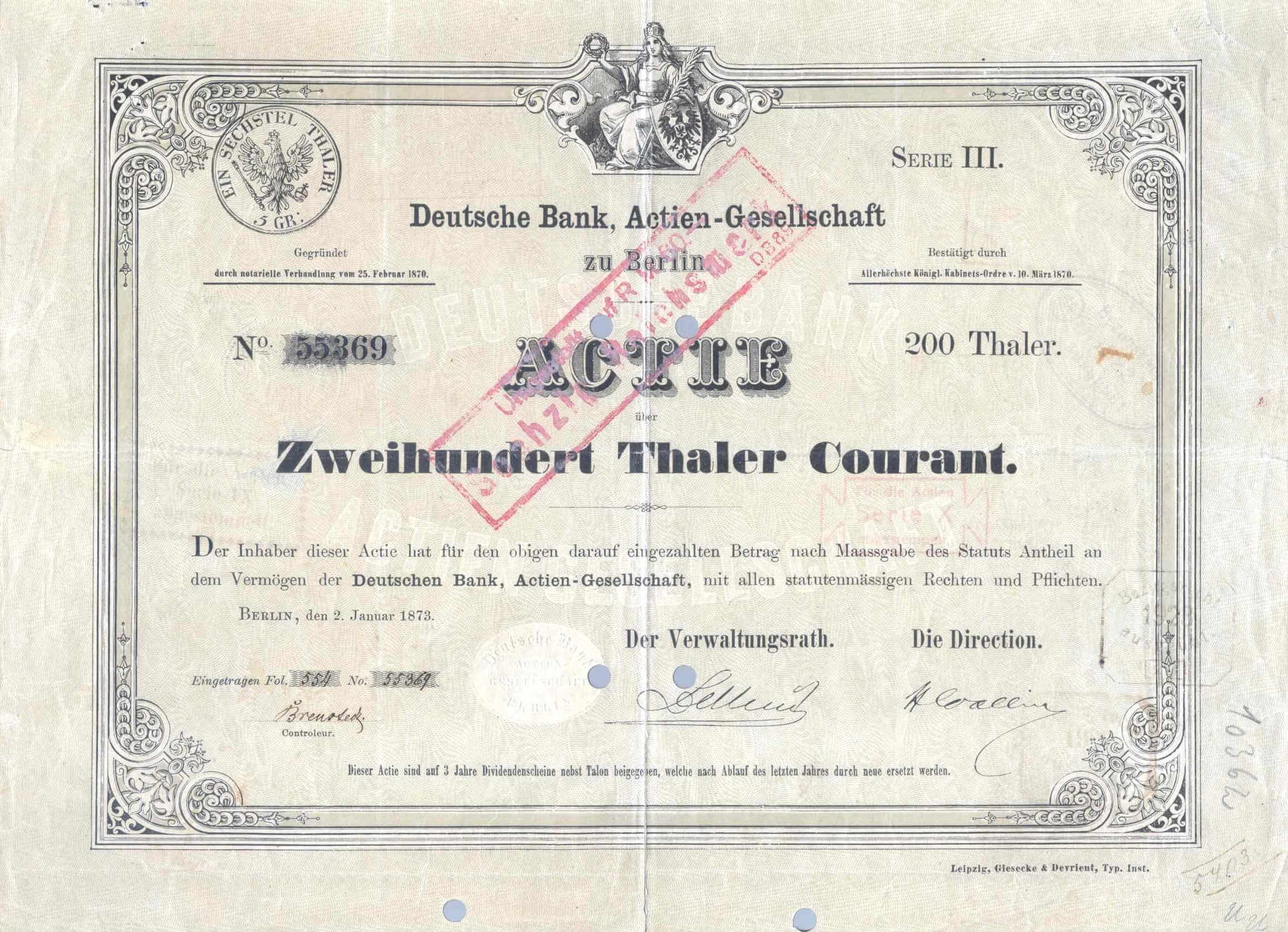Die Wurzeln der heutigen Geschäftsbank gehen zurück auf die Aktivitäten des Gründungsmitglieds Adelbert Delbrück 1869 aus Berlin. Mit acht weiteren Vertretern aus dem Bankgewerbe entstand das Gründungskomitee der heutigen Deutschen Bank. Der Antrag auf Konzession zur Aktiengesellschaft wurde am 22. Januar 1870 vom preußischen Handelsministerium mit einem Vorbescheid genehmigt. Das Verfahren war von Minister Itzenplitz und dem wohlwollenden preußischen Ministerpräsidenten Otto von Bismarck vorangetrieben worden. Am 9. April 1870 nahm die Deutsche Bank ihren Geschäftsbetrieb in einem zweigeschossigen Haus in der Französischen Straße 21 auf. Schon ein Jahr später bezog sie mit 50 Angestellten repräsentativere Räume in der Burgstraße 29 in unmittelbarer Nähe der Börse.