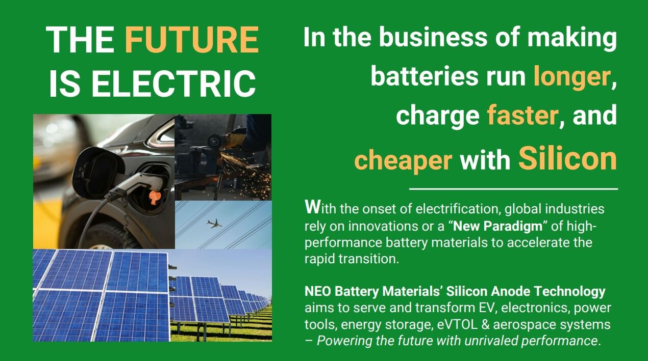 Vor kurzem gelang es NEO sich ein Kernpatent zu sichern. CEO Spencer Huh kommentiert: "„Wir freuen uns, bekannt geben zu dürfen, dass das KIPO eines der Kernpatente im Zusammenhang mit der kostengünstigen, einstufigen Nanobeschichtungstechnologie von NEO zur Herstellung von aktiven Materialien für Siliziumanoden erteilt hat. Da Südkorea eines der größten Batterieproduktionsländer und ein Zentrum für Batterieinnovationen ist, wird NEO seine Präsenz und Entwicklung in diesem Markt strategisch weiter ausbauen.“