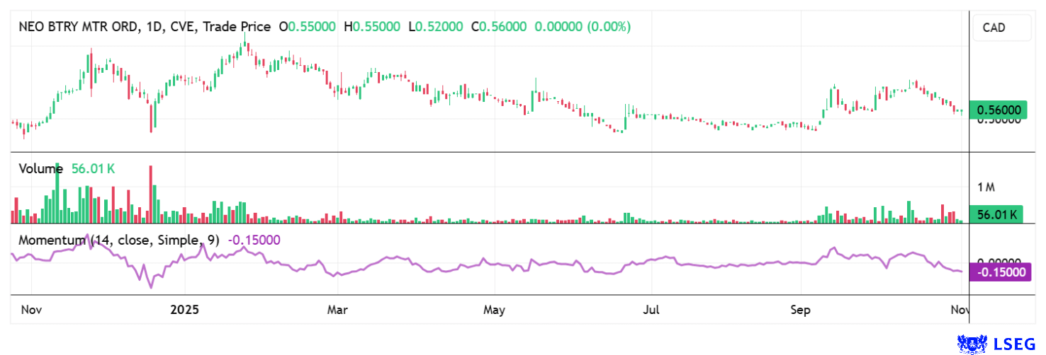 NEO zeigt nicht nur Technologiepotenzial, sondern setzt gezielt auf Skalierung. Die Übernahme einer bestehenden Fertigungsstätte in Südkorea sowie der Aufbau einer 3,2 Acre großen Produktionsfläche für zylindrische und prismatische Batterien in Kanada belegen den Schritt zur industriellen Umsetzung. Die im Rahmen einer Kapitalerhöhung von 5 Mio. CAD eingeworbenen Mittel fließen konkret in Maschinen, Produktionsinstallationen und Working Capital – mit dem Ziel, bereits im kommenden Jahr über 20 Tonnen Silizium-Anoden jährlich ausliefern zu können und mittelfristig Batterien im Megawattstunden-Maßstab anzubieten. Damit erfolgt der Übergang vom Prototyp- und Kleinserienstatus hin zur echten Produktions- und Lieferfähigkeit. Investoren bekommen den Eindruck, dass hier alles sehr schnell geht und die handelnden Personen an vorderster Front gezielt und abschlusssicher agieren.