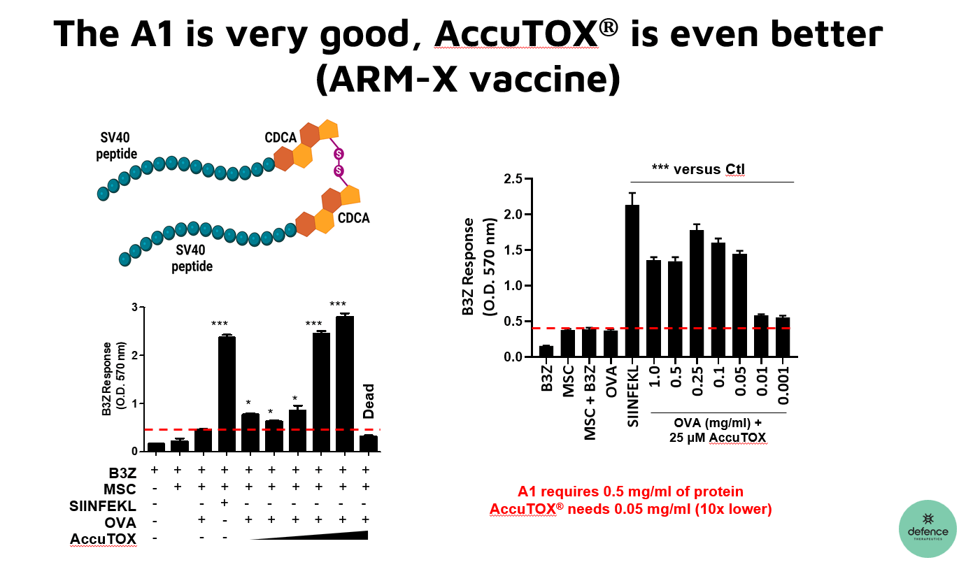 Hier gelangen Defence Therapeutics in den vergangenen Monaten zahlreiche Fortschritte. Ursprünglich war AccuTOX™ als reines Chemotherapeutikum geplant. Die Beobachtung: Verabreicht man Accum™ in hochkonzentrierter Form, kann man Krebszellen damit so schädigen, dass sie absterben. Das Ergebnis: AccuTOX™ als eigenständige Technologie. Zusätzlich zu dieser Erkenntnis hat Defence Therapeutics jetzt in wissenschaftlichen Untersuchungen gezeigt, dass AccuTOX™ dazu in der Lage ist, mesenchymale Stammzellen (MSZ) in antigen-präsentierende Zellen umzuwandeln. Das weitet die Funktionsweise von AccuTOX™ deutlich aus und begünstigt auf verschiedenen Wegen eine Immunreaktion gegen Krebszellen. Das könnte dafür sorgen, dass AccuTOX™ auch vom Markt als potenzieller Blockbuster gesehen wird.