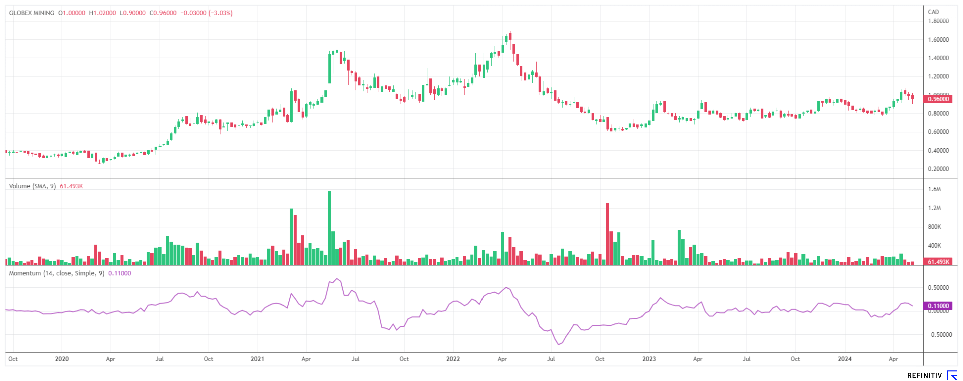 Während die Spotpreise der Edelmetalle in den letzten 6 Monaten bereits positives Terrain erreicht haben, stehen die großen und kleinen Minengesellschaften erst am Beginn eines längeren Aufschwungs. Ein Grund für die Zurückhaltung der Marktteilnehmer ist die Kosten-Explosion im gesamten Sektor, der die Explorations- und Erzeugerpreise bei Edelmetall um etwa 20 bis 30 % ansteigen ließ. Aktuell ist das Markt-Sentiment aber im Aufwärtsmodus. Globex Mining hat seine Kosten traditionell im Griff, denn man betätigt sich als Asset Manager und bohrt selbst nicht. Das produziert erst mal keine Kosten und wenn ein Projekt zum Erfolg geführt werden kann, erhält Globex entweder Optionseinnahmen oder generiert Royalties.