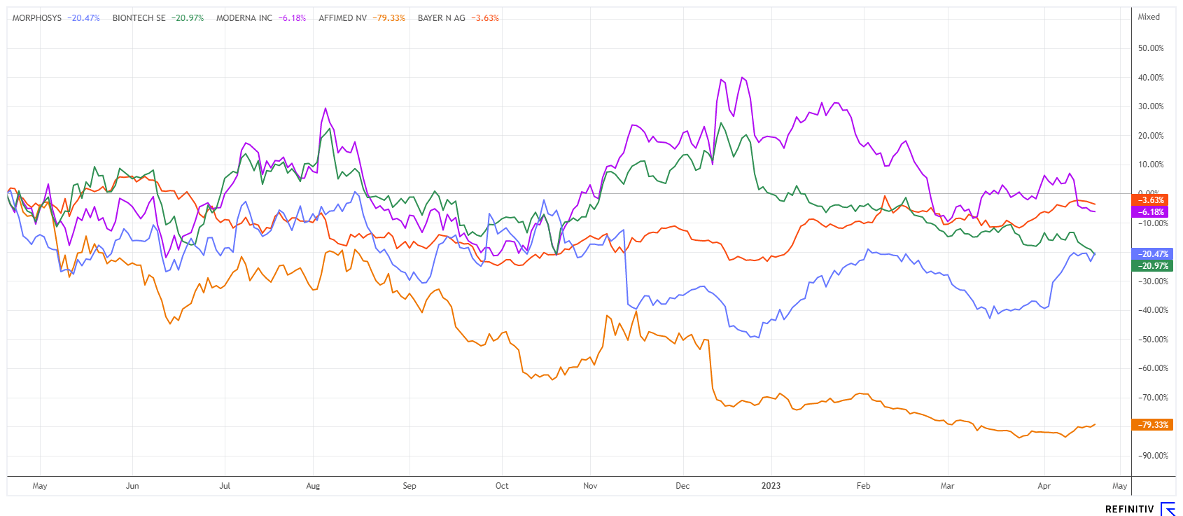 Die Umsatzerlöse beliefen sich im Konzern auf 278,3 Mio. EUR, ein Plus von 55 % gegenüber 179,6 Mio. EUR im Jahr 2021. Der Anstieg ist im Wesentlichen auf höhere Umsatzerlöse aus Lizenzen aufgrund der Auslizenzierungsvereinbarungen mit HI-Bio und Novartis zurückzuführen. Die Tantiemen im Jahr 2022 beinhalten 3,0 Mio. EUR aus dem Verkauf von Minjuvi außerhalb der USA durch den Partner Incyte und 96,9 Mio. EUR aus dem Verkauf von Tremfya®, welche vollständig an Royalty Pharma weitergegeben werden. Die Aufwendungen für Forschung und Entwicklung erhöhten sich von 225,2 auf 297,8 Mio. EUR, sie stiegen in erster Linie aufgrund höherer Entwicklungsaktivitäten und der Einbeziehung von Aufwendungen aus der Constellation-Akquisition seit dem dritten Quartal 2021. Die Vertriebsaufwendungen summierten sich zu 92,4 Mio. EUR (Vj: 121,5), die allgemeinen Verwaltungskosten sanken ebenfals leicht auf 60,1 Mio. EUR (Vj: 78,3). Der operative Verlust errechnet sich zu 220,7 Mio. EUR (Vj abschreibungsbedingt 508,3), unter dem Strich verbleibt ein Konzernverlust von 151,1 Mio. EUR (Vj: 514,5). Der geringere Fehlbetrag im Jahr 2022 ist hauptsächlich auf die Verbuchung von Finanzerträgen zurückzuführen, die durch die Verringerung der Finanzverbindlichkeiten aus Kooperationen ausgelöst wurden. Zum 31. Dezember 2022 verfügte das Unternehmen über liquide Mittel und sonstige finanzielle Vermögenswerte in Höhe von 907,2 Mio. EUR, rund 8 % geringer als im Vorjahr. Insgesamt lagen die Zahlen im Rahmen der Expertenschätzungen. Wichtig erscheint daher der Blick nach vorne.