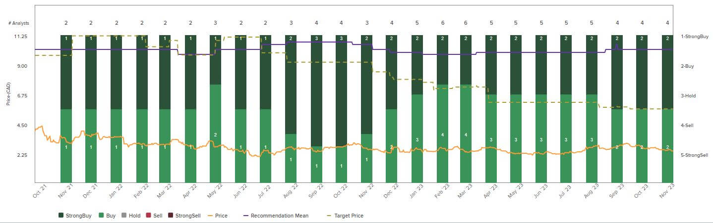 Die Kurserwartungen der Analysten auf der Plattform Refinitiv Eikon bewegen sich im 12-Monats-Horizont derzeit noch zwischen 4,75 und 6,30 CAD. Unverständlich, denn Saturn Oil & Gas hat im abgelaufenen Quartal gezeigt, dass man die Integration der neuen Liegenschaften zügig vorantreibt. Die Umsatzausdehnung spricht für eine gute Explorationsleistung und bestätigt die Werthaltigkeit der erworbenen Liegenschaften. In einem normalisierten wirtschaftlichen Umfeld müssten die niedrigen Risikoparameter der Gesellschaft daher zu steigendem Anlegerinteresse führen. Wir erwarten für das Jahr 2024 eine weitere sequentielle Verbesserung der operativen Zahlen im gewohnten Umfang. Wegen der historisch niedrigen Sektor-Bewertung sind M&A-Transaktionen durchaus wahrscheinlich.