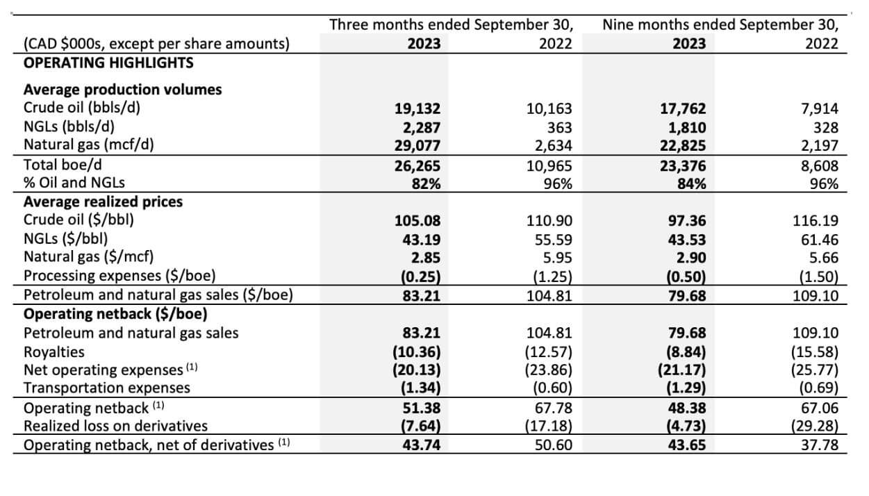 Hinweis: Eine ausführliche Präsentation zu den Finanzergebnissen für das 3. Quartal und den ersten 9 Monaten 2023 finden sie hier. Am 8.11.2023 präsentierte sich Saturn Oil & Gas seinen Investoren in einem Webcast. Weitere Informationen finden sie auf www.saturnoil.com.