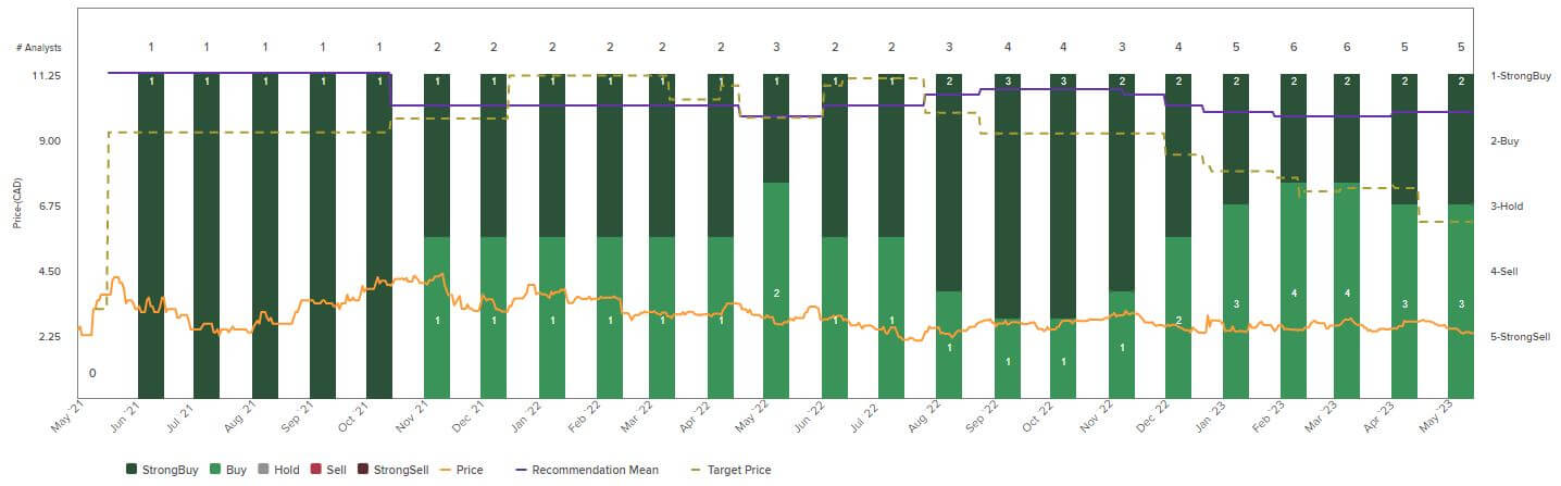 Die Kurserwartungen der Analysten auf der Plattform Refinitiv Eikon bewegen sich für einen 12-Monats-Horizont derzeit zwischen 4,75 und 7,50 CAD. Damit liegen die Kursziele zwischen 100 und 250 Prozent über den letzten Kursen von 2,25 CAD. Hinderlich für das Schließen des Bewertungs-GAPS zu Faktor 5 mal EV/adj EBITDA könnte der aktuell sinkende Ölpreis sein. Eine Wertaufhellung kann das Unternehmen weiterhin durch verstärkte Bohrinvestitionen erreichen. Die Waldbrände in Alberta drücken die Produktion und den Cashflow aktuell etwas nach unten, sie haben aber keinen Einfluß auf die Bewertung der vorhandenen Ölreserven.
