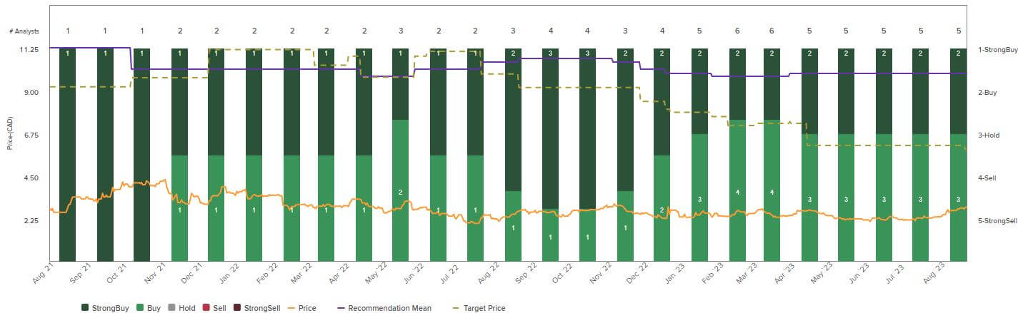 Die Kurserwartungen der Analysten auf der Plattform Refinitiv Eikon bewegen sich für einen 12-Monats-Horizont derzeit noch zwischen 4,75 und 6,50 CAD. Damit liegt der aktuelle Preis der SOIL-Aktie immer noch weit von seinem fairen Kursziel entfernt. Die zuletzt gezeigte Kursdynamik deutet aber darauf hin, dass die Hürde bei 2,80 CAD nachhaltig überwunden werden kann. Auch die Charttechnik läßt der Aktie weiter freien Raum nach oben, sofern die Linie von 2,50 CAD nicht mehr nach unten durchschritten wird. Eine Wertaufhellung kann das Unternehmen weiterhin durch verstärkte Bohrinvestitionen und den Einsatz moderner Technologien erreichen. Die zuletzt verfallenen 30,54 Mio. Warrants und Optionen tragen jetzt jedenfalls nicht mehr zur Verwässerung bei. Der innere Wert je Aktie erhöht sich damit signifikant.