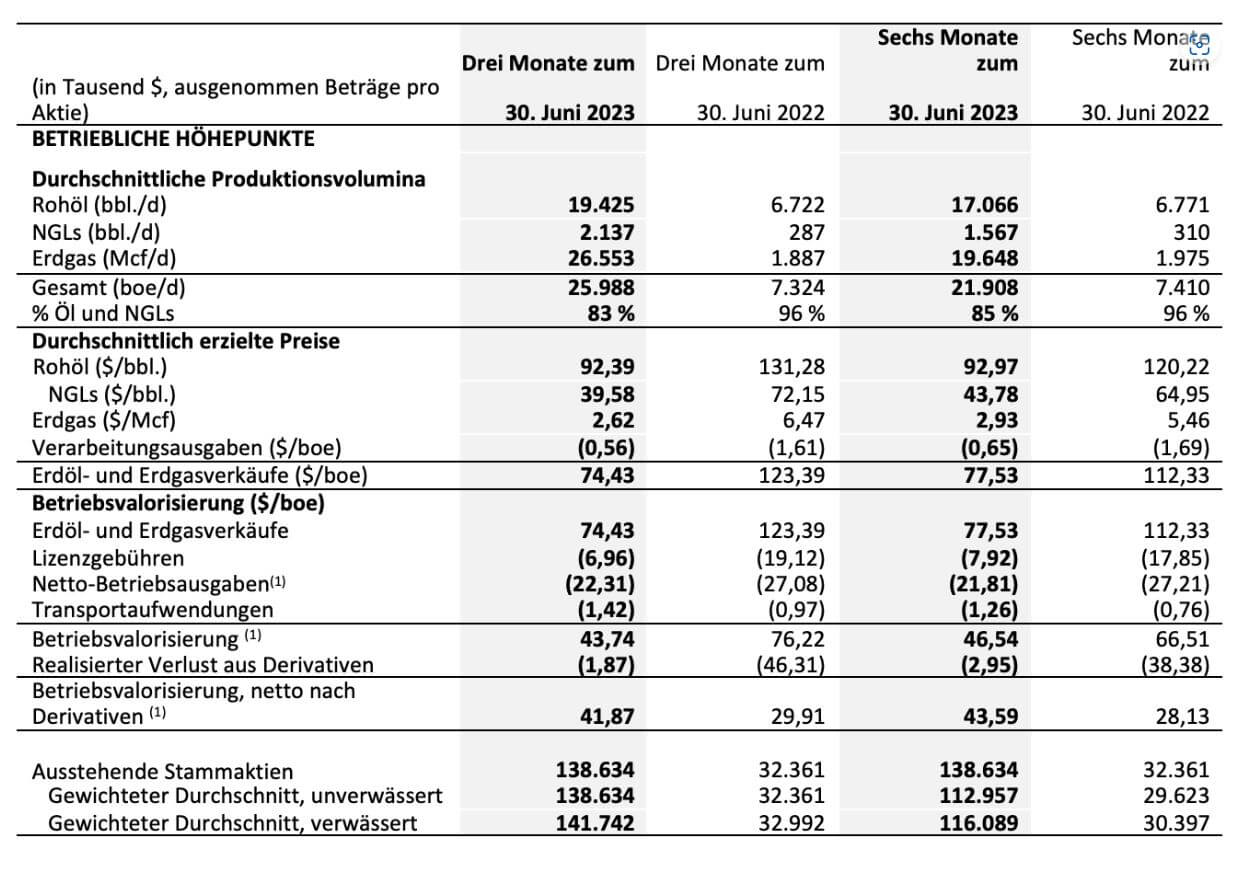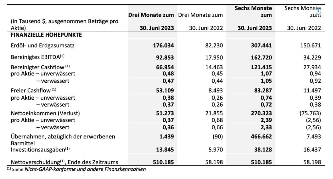 Hinweis: Eine ausführliche Präsentation zu den Finanzergebnissen für das 2. Quartal 2023 finden sie hier. Eine gesprochenen Version kann unter diesem Link abgerufen werden: Q3-Webcast Aufzeichnung. Am 10.10.2023 präsentiert sich Saturn Oil & Gas auf dem International Investment Forum. Die Veröffentlichung der Zahlen für das 3. Quartal wird voraussichtlich am 29.11.2023 erfolgen.