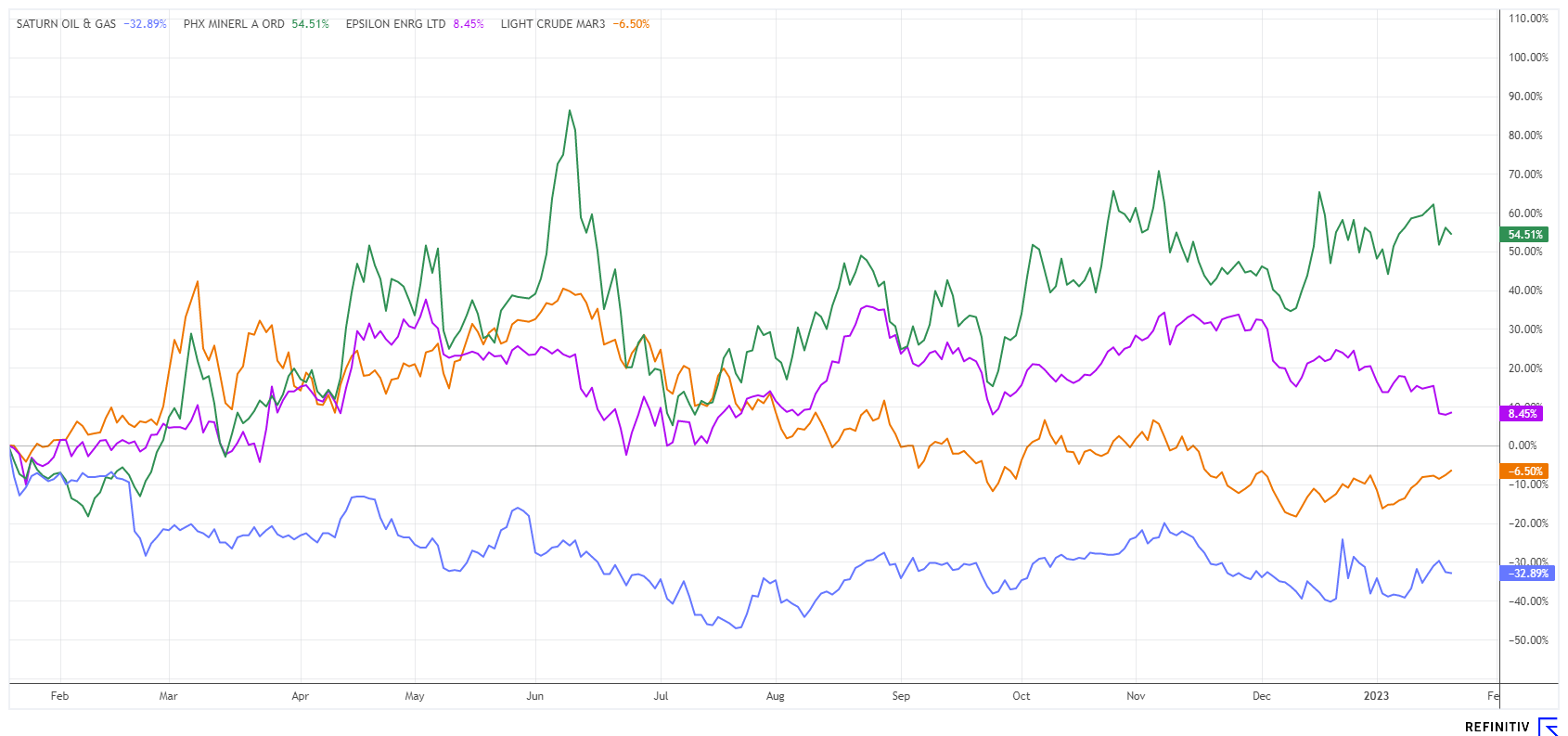 Der WTI-Ölpreis (West Texas Intermediate) wird voraussichtlich einen operativen Rückfluss von ca. 48,55 US-Dollar pro BOE generieren, was zu einem annualisierten Nettobetriebsergebnis (NOI) von 311 Mio. CAD führen wird. Dies führt auf Jahresbasis zu einem freien Cashflow von ca. 232 Mio. CAD, welcher zur Schuldentilgung und Exploration verwendet werden kann. Das ganze Gebiet erstreckt sich auf ca. 700 Bohrstandorte mit einer Lebenszeit von etwa 15 Jahren. Die Ridgeback-Akquisition ist damit ein weiterer Quantensprung für die Kanadier, denn es befördert Saturn adhoc von der Bezirksliga in die Oberliga. Die Marktkapitalisierung des kombinierten Unternehmens wird nach Genehmigung des neuen Aktienkapitals knapp 300 Mio. CAD betragen, die Nettoverschuldung soll dabei plangemäß bis Ende 2023 auf 345 Mio. CAD absinken. Unterstellt wird in der neuen Kalkulation ein WTI-Preis von 80 USD.