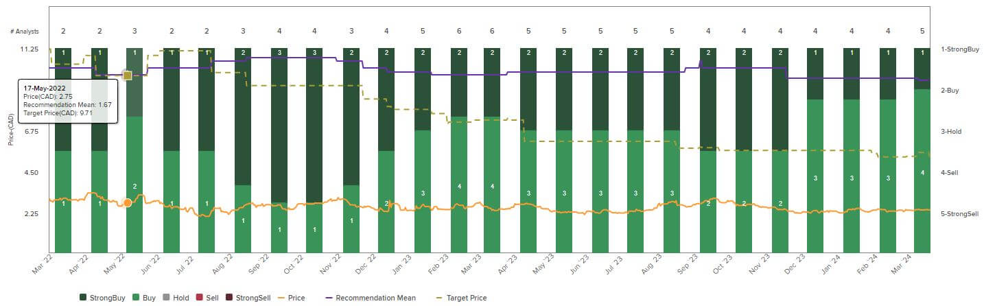 Die Kurserwartungen der Analysten auf der Plattform Refinitiv Eikon bewegen sich im 12-Monats-Horizont derzeit noch zwischen 4,45 und 6,30 CAD. Im Mittel erwarten fünf Analysehäuser einen Kurs auf 12-Monats-Basis von 5,15 CAD. Diese Einschätzung könnte sich in den nächsten Wochen aber noch verändern, da das neue Zahlenwerk eher zu Anpassungen nach oben führen wird. Immerhin beträgt der Nettobarwert der geprüften Reserven zum Jahresende 2023 ganze 6,72 CAD pro Aktie (NPV/share). Die Gesellschaft hatte in 2023 eine kleine Delle wegen der horrenden Waldbrände in Alberta hinnehmen müssen. Für das laufende Jahr sollten die Fördermengen sich aber im Korridor von 26.500 bis 27.500 BOE/d bewegen.