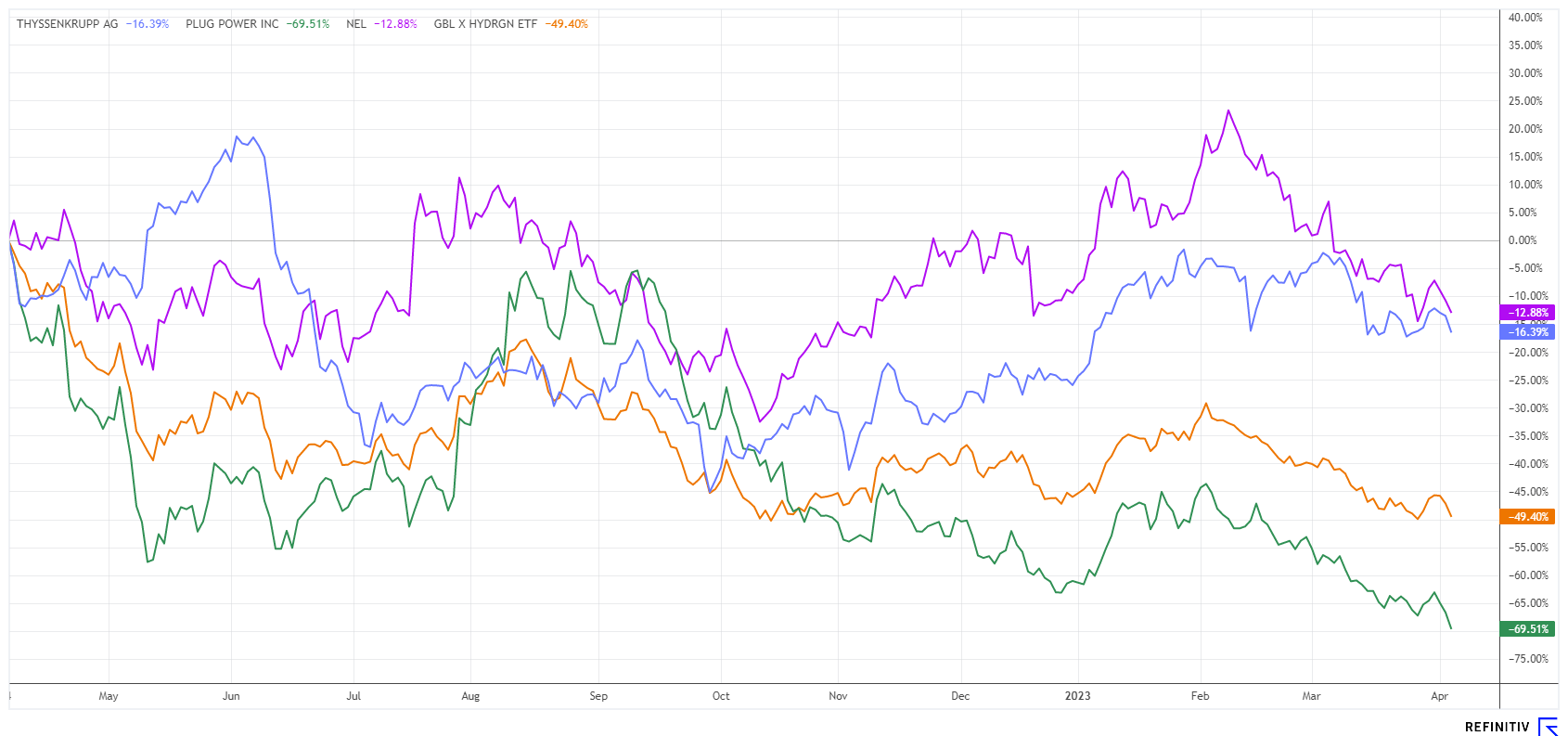 ThyssenKrupp könnte Nucera vielleicht schon im Juni an die Börse bringen, wenn der Markt bis dahin noch mitspielt. Denn derzeit ist die Laune überraschend gut, nur der Wasserstoff-Sektor stottert gewaltig. Aktuell überwiegt wohl die Skepsis, dass eine schnelle industrielle Infrastruktur für Wasserstoff-Anwendungen geschaffen werden kann. Schon seit längerer Zeit sind die IPO-Pläne bekannt, bisher gab es aber noch kein Datum. Allerdings darf nun auch nicht mehr lange taktiert werden, denn das Projekt ist wichtig für ThyssenKrupp und für den Standort Deutschland. Es braucht aber gewaltige Investitionen in Technologie und Forschung, die wegen fehlender öffentlicher Gelder nur über die Kapitalmärkte finanziert werden können.