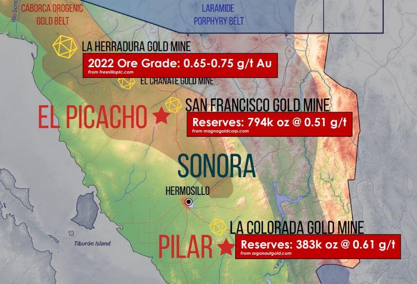 Erleichtert werden die Arbeiten durch eine hervorragende Infrastruktur, die einen vollständigen Zugang erlaubt. Pilar liegt 130 km südöstlich von Hermosillo, der Hauptstadt von Sonora. In nur 150 Minuten gelangt man aufeiner überwiegend asphaltierten Strecke in den Projektstandort nahe der Stadt Suaqui Grande. Das Konzessionsgebiet El Picacho befindet sich etwa 145 km nördlich von Hermosillo und ist von dort innerhalb von 2 Stunden erreichbar. Die lange Bergbau-Geschichte in Sonora hat zu einer Ansiedlung von Branchenexperten geführt, was die schnelle Minenerschließung ermöglicht. Die Genehmigungsprozesse mit lokalen Behörden und die Jurisdiktion gestalten sich einfach und bereiten bislang keinerlei Probleme.