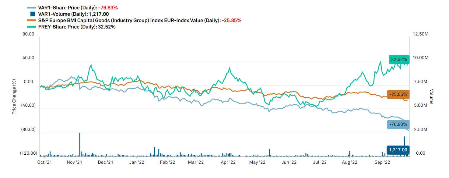 Der norwegische Konkurrent Freyr Battery macht ebenso von sich reden. Hier läuft wohl alles nach Plan, denn wie bei Varta sollen auch im Jahr 2024 die ersten Batterien vom Band laufen. Bei den Analysten ist die Aktie höher im Kurs und man überbietet sich mit immer neuen Kurszielen. Mag daran liegen, dass Freyr weniger breit aufgestellt ist, norwegische Energie bezieht und damit dem Unternehmen die Rohstoffkrise nicht so stark ins Gesicht bläst. Auf Jahressicht gewinnt Freyr Battery über 50% - von Tristesse ist hier keine Spur.