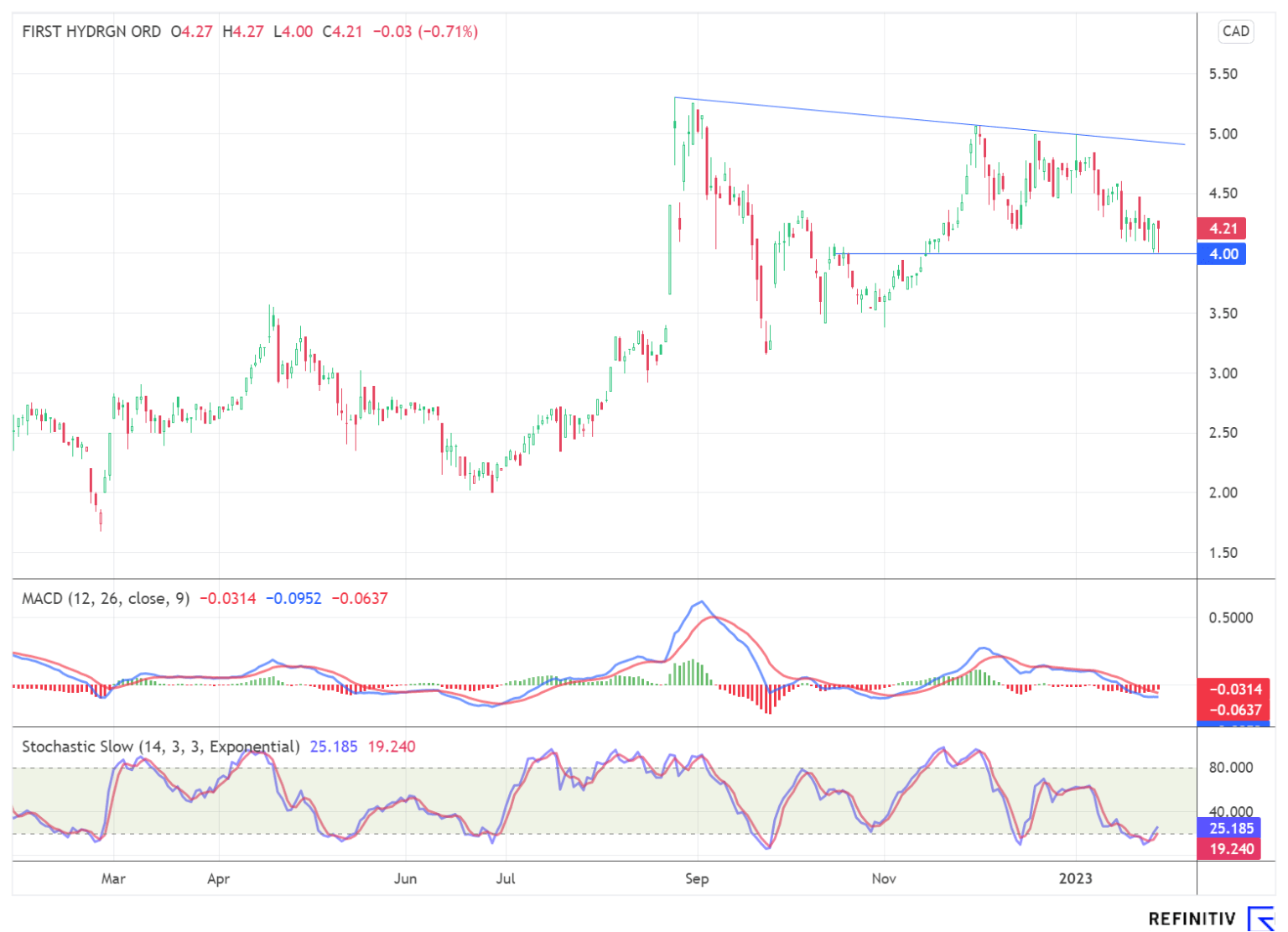 Neben der Entwicklung der Utility Vans der neuesten Generation positioniert sich First Hydrogen mit seinem umfassenden „Hydrogen-as-a-Service“-Modell in allen Bereichen des Wasserstoffsektors und bietet will seiner Kundschaft zukünftig eine komplette Wertschöpfungskette bieten. Dazu zählen neben der Entwicklung eines Wasserstoff-Betankungssystems die Produktion und der Vertrieb von grünem Wasserstoff. Aufgrund dessen gehen wir davon aus, dass der positive News Flow in naher Zukunft nicht abreißen dürfte.