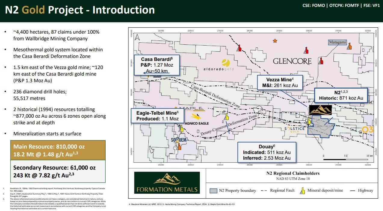 Formation Metals Inc. (CSE: FOMO; FSE: VF1; OTCQB: FOMTF) is a North American gold and base metal explorer focused on high-grade projects in prime mining regions. The Company focuses on drill targets with high discovery potential and clear growth paths for resource expansion. Its flagship project, the N2 Gold Project in Québec, hosts a historical resource of approximately 870,000 ounces of gold. The overall structure of the project comprises six zones, with the A Zone and RJ Zone in particular considered geologically highly mineralized and already open at significant strike lengths. Formation Metals currently has approximately CAD 12.7 million in working capital, no debt, and ample funding for multiple exploration phases. CEO Deepak Varshney aims to rapidly advance the N2 Project toward a NI 43-101 compliant resource estimate and, over the medium term, toward production readiness. In parallel, the copper and zinc potential is being systematically reviewed, which could give the Company additional strategic importance in the field of critical metals.