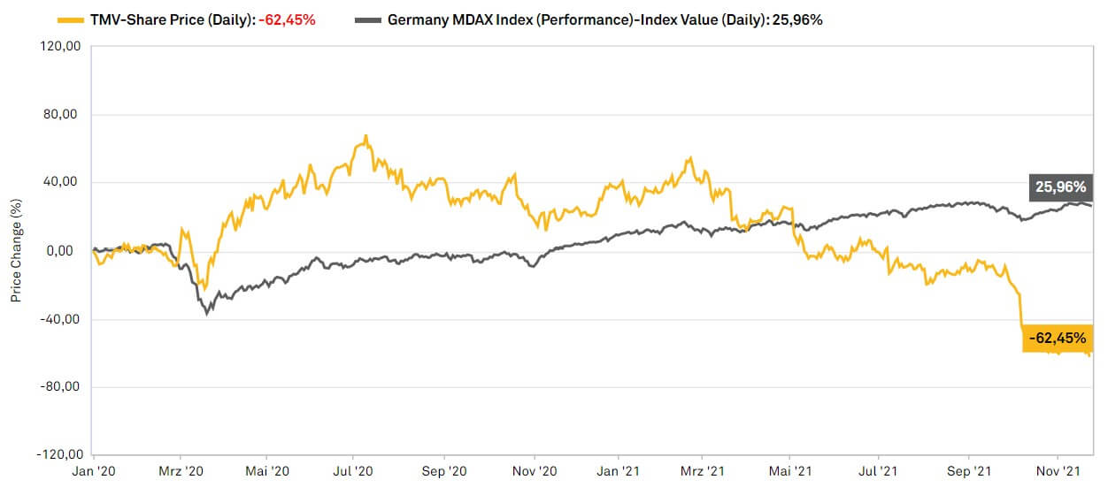 The Company's loss of confidence continues. Shareholders then received a further negative climax and confirmation of the distrust in the expensive partnerships on 06.10.2021 with the publication of the preliminary results for the third quarter. Due to lower than expected billings and a higher cost base, the adjusted EBITDA margin was approximately 34% for the third quarter and approximately 48% for the first nine months of 2021.