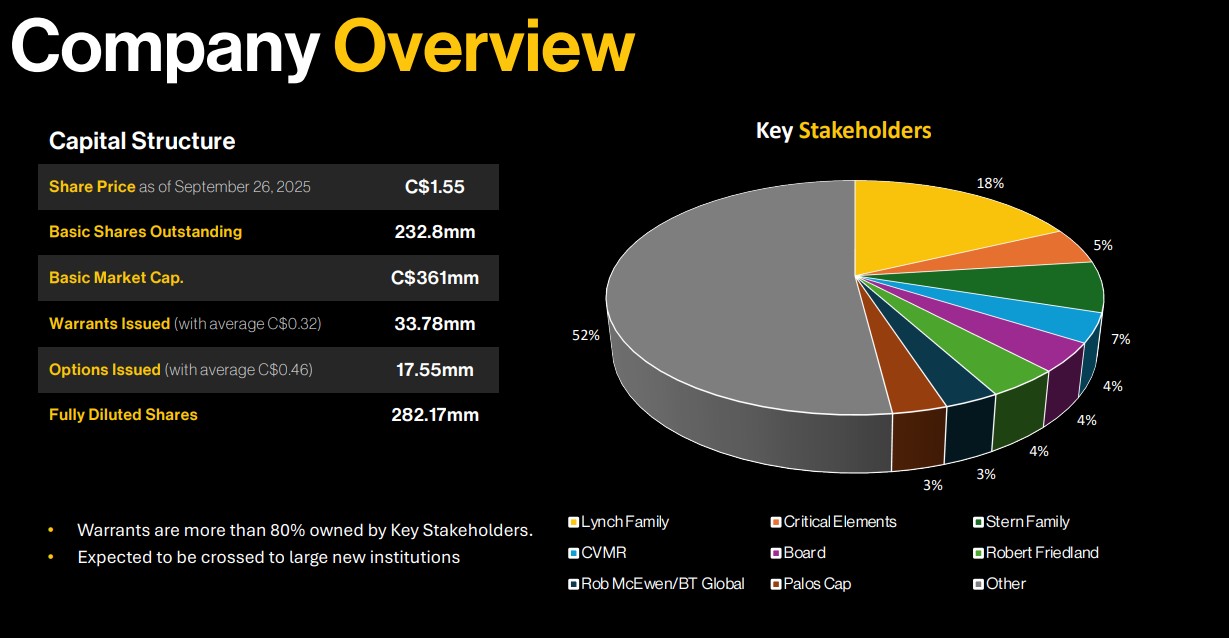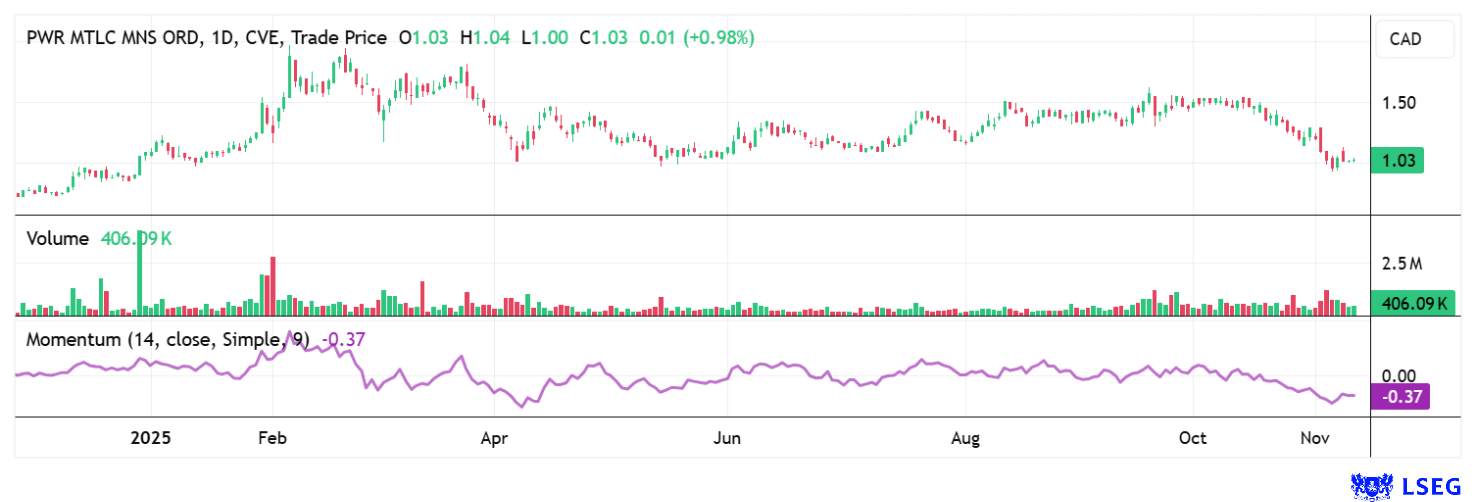 With a fully diluted share count of 282.17 million and a market valuation of approximately CAD 240 million, the explorer Power Metallic Mines entered a new league in 2025. The stock has now secured a firm position within the TSX-V commodity segment. According to current research reports, the PNPN share has solid upside potential of 150 to 200% at current prices of around CAD 1.03. The current market capitalization of around CAD 240 million still offers significant room for growth, while already reflecting the capital market’s recognition of the Company’s exceptional standing in the race for critical metals. This implies a medium-term revaluation. What is more, the current valuation level remains attractive for large mining companies looking to add a top-tier project to their portfolios.