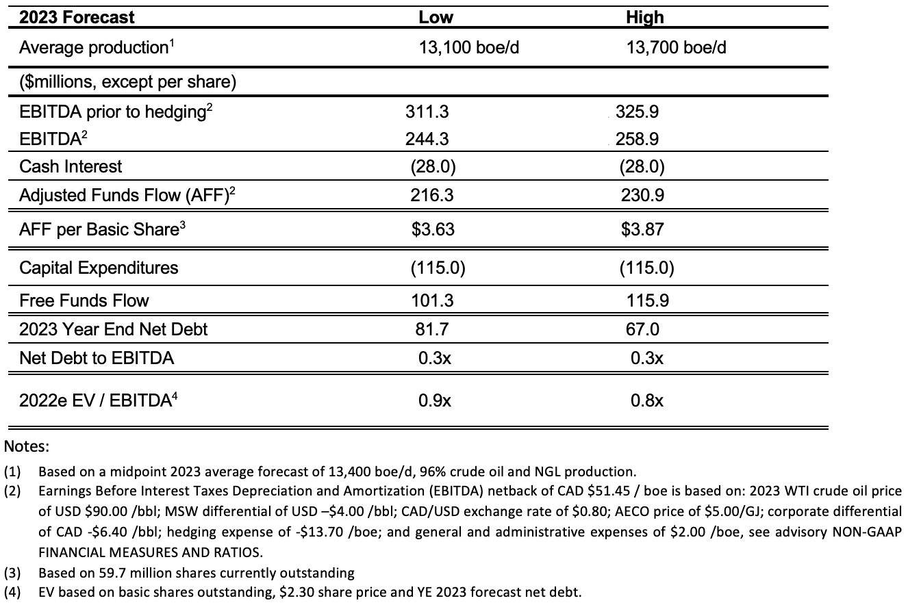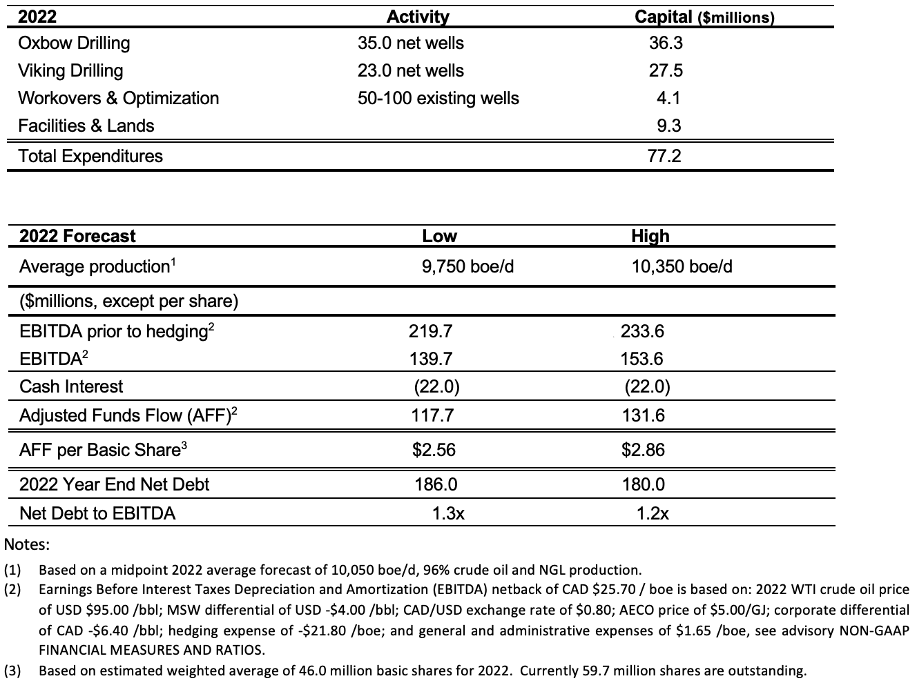 In total, this still translates to CAD 77.2 million in capital expenditures for 2022, which will lift daily production to an average of 9,750 to 10,350 boe/d. Cash flow is forecast to be between CAD 117.7 and 131.6 million.
