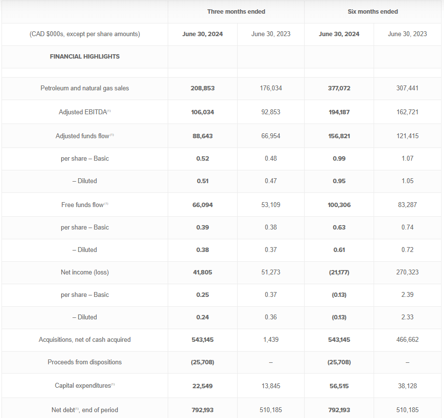 ● Recognized oil and gas revenues of CAD 208.9 million, compared to CAD 176.0 million in the second quarter of 2023