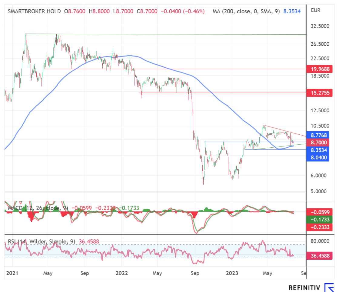 The launch of the latest generation broker, Smartbroker+, has been successful after the publication of first teasers and shows on the one hand the user-friendliness and on the other hand the integration of many community modules, which in our view should attract a new, younger target group. In addition, with the launch of the smartphone app, Smartbroker Holding AG has the same tools as a conventional neobroker, but paired with the product offering of a full-service broker. As another unique selling point, which in our view should give a bonus to the valuation, is the connected financial community with over 850,000 users. The market capitalization of Smartbroker Holding AG currently stands at EUR 142.39 million. At the latest after the final launch of Smartbroker+, the share could free itself from its consolidation phase.
